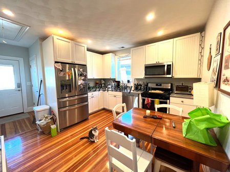 Davis Square, Somerville: HUGE, Brand new construction in 2021 - TOP FLOOR - FOUR-beds, TWO FULL-baths w/modern eat-in-kitchen New cabinets, granite counter, stainless appliances, LAUNDRY IN UNIT, hardwood floors thru-out & TWO FULL Ceramic tiled bathrooms. Central HVAC. Front sun room & back porch. HUGE yard!!! Short walk to redline MBTA Davis Square. Features: Non-smoking - Hardwood Floors - Modern Kitchen - Eat-in Kitchen - Gas Range - Dishwasher - Porch - Modern Bath - High Ceilings - Stainless Steel Appliances - Granite Countertops - Amenities: Business Center - Storage in Basement - Subway - Commuter Rail - Bus - Zip Car - Laundry in Unit - On street Listing#-195484634