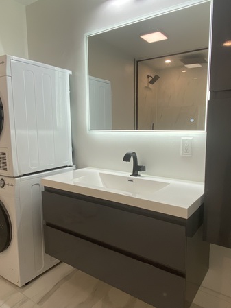 Recently developed Luxurious two bedroom. The entire unit was redone with exquisite and high-end furnishings. Central AC, Beautiful granite counters in the kitchen which is equipped with a gas stove, dishwasher, disposal and wine cooler. Bathroom is all ultra-modern with marble heated floors, multiple fixtures in the shower including rain, anti-fog mirror with lighting and brand new front loading washer and dryer. Light pours in the windows across the main room with the decorative fireplace. The unit has a very open and comfortable flow. Both bedrooms are comfortable with one featuring a loft and access to the large private deck. The deck has a custom build planter for private gardening. Overall, Simply Stunning! Available June 1st. Laundry in Unit