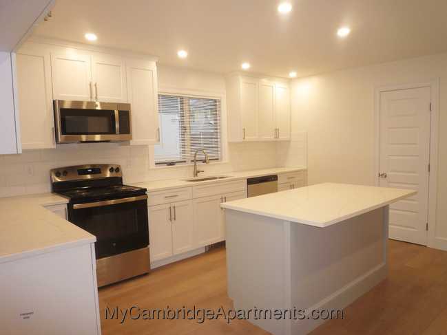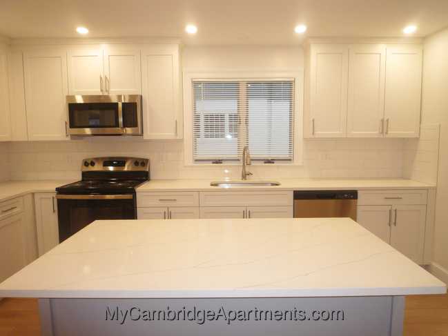 East Arlington. Avl to start FEBRUARY or MARCH 1. Close to Cambridge and Boston! Walk to Alewife Redline via bikepath! Steps to Capitol Theatre! Small/medium dogs OK/negotiable. Spacious 2-bedroom (~1200sf) with new kitchen and bath, air-conditioning, hardwood floors. On Grafton Street, a block from Mass Ave. First floor in a 3-unit house. Living room, dining room, new stainless steel kitchen with island, quartz countertops, lots of cabinetry, coil-top electric range, built-in microwave, dishwasher/disposal, refrigerator. New mini-split built-in a/c units (heating/cooling). New bath with walk-in shower. New high-efficiency boiler, double-paned windows. Private washer/dryer hook-ups and storage in basement. Landlord pays water and sewer, snow removal, grounds maintenance. Tenant pays oil (heat and hot water), and electricity. Off-street parking included for one car in tandem driveway. Additional parking may be avl in private rentals or parking lots nearby. Professionally-managed property. Listing#-221705742