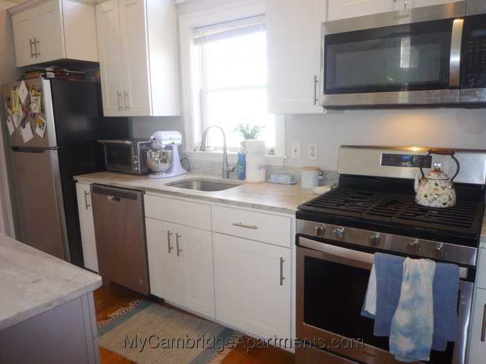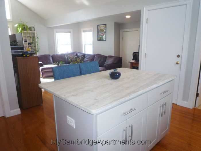 Avl JUNE 1. Just STEPS to Green line at Magoun Sq! Near 93! NEW RENOVATION in 2020! Deleaded top floor 2br with redone granite stainless kitchen with island, redone bath, 2-car parking in dedicated driveway. In a gut-rehabbed 2-family house, on a quiet private way. Pets negotiable. On Richardson Terrace, off Richardson Street, near Lowell Street. Sunny and light second floor, ~800sf, with open living/dining/kitchen, high ceilings, southwest exposure, refinished ash hardwood floors, fresh paint. Dishwasher and disposal, gas range, built-in microwave, refrigerator. Double-paned windows, insulated walls and roof. Full bath with tub. Shared laundry facilities and storage in the basement. Small rear outdoor space. Just east of Ball Square and Tufts University, just west of Winter Hill. Near bus #80 toward MIT (every 15 min. in the AM). Near buses to Red and Orange Lines. Tenant pays gas (heat, hot water, cooking) and electricity. Rent includes parking for 2 cars. Listing#-29463